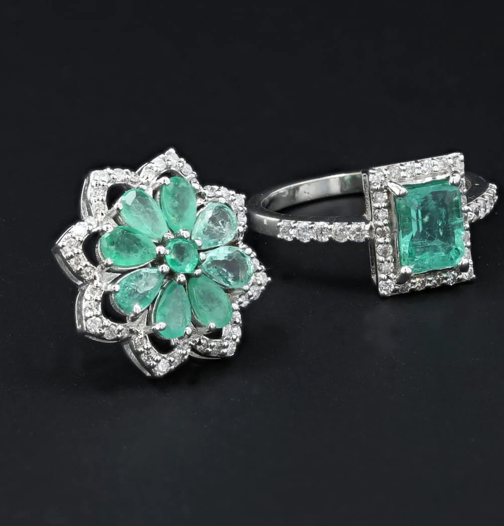 Colombian Emerald Ring: 1.85 ct tw Emeralds, 0.70ct tw Diamonds, 14K White Gold