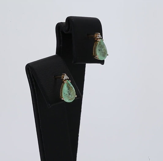 Colombian Emerald Earrings (1 pair): 1.5 ct tw Emeralds, 0.02 ct tw Diamonds, 14K Yellow Gold