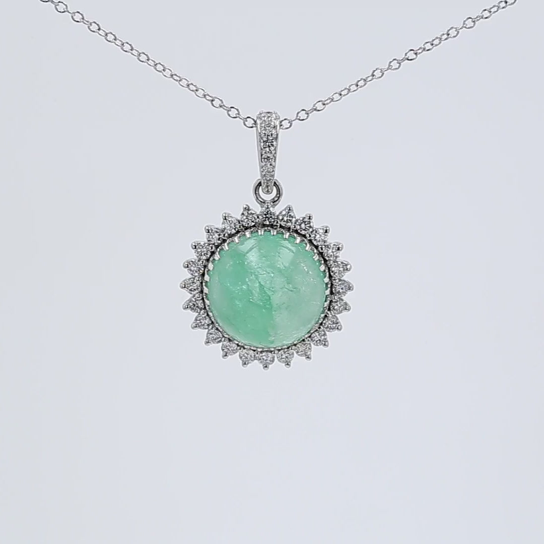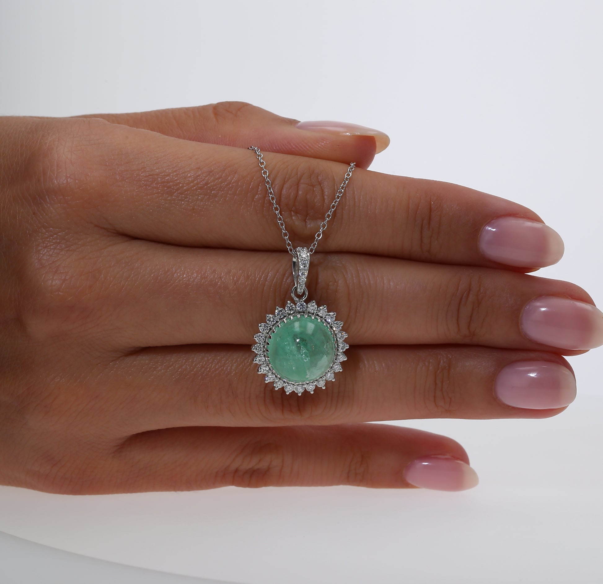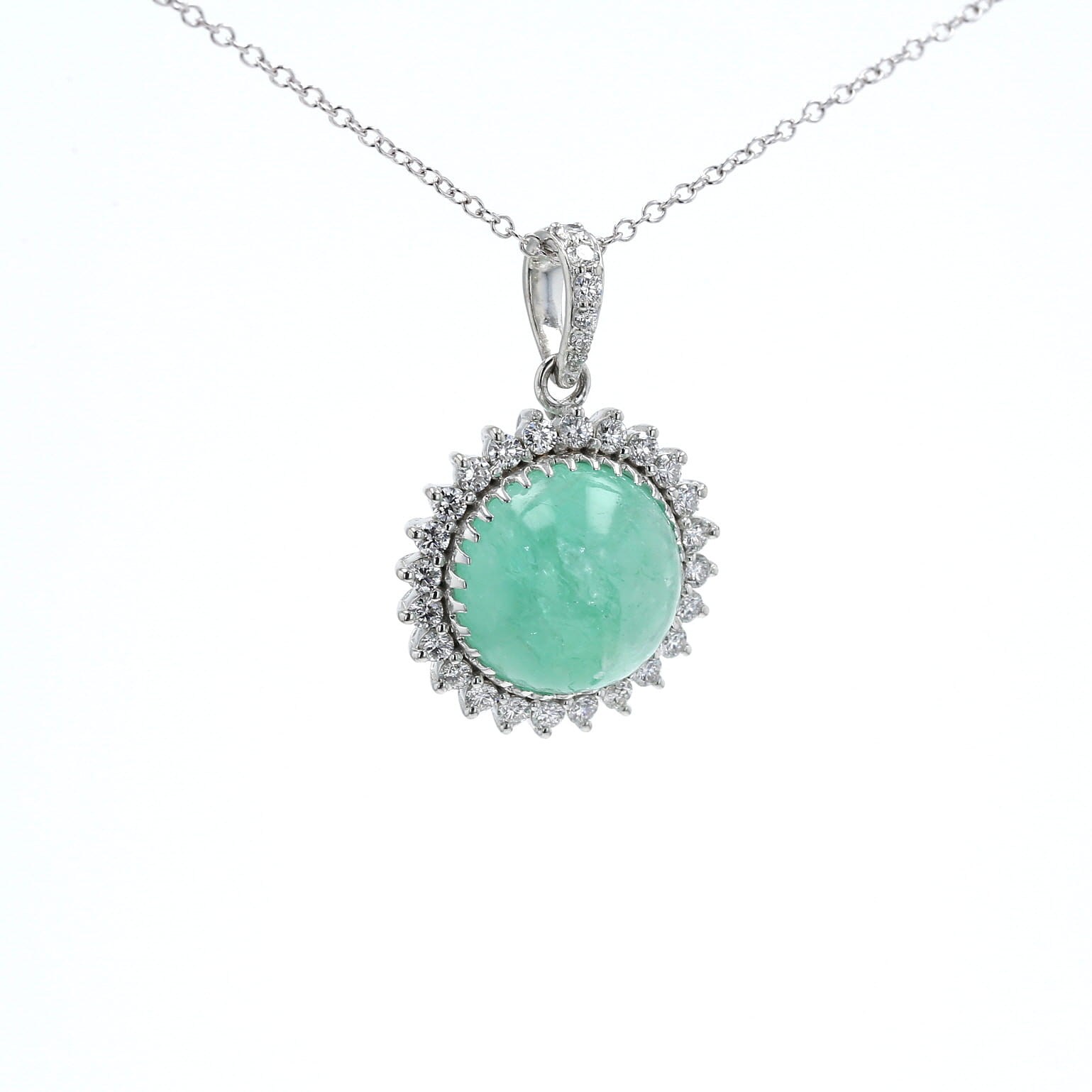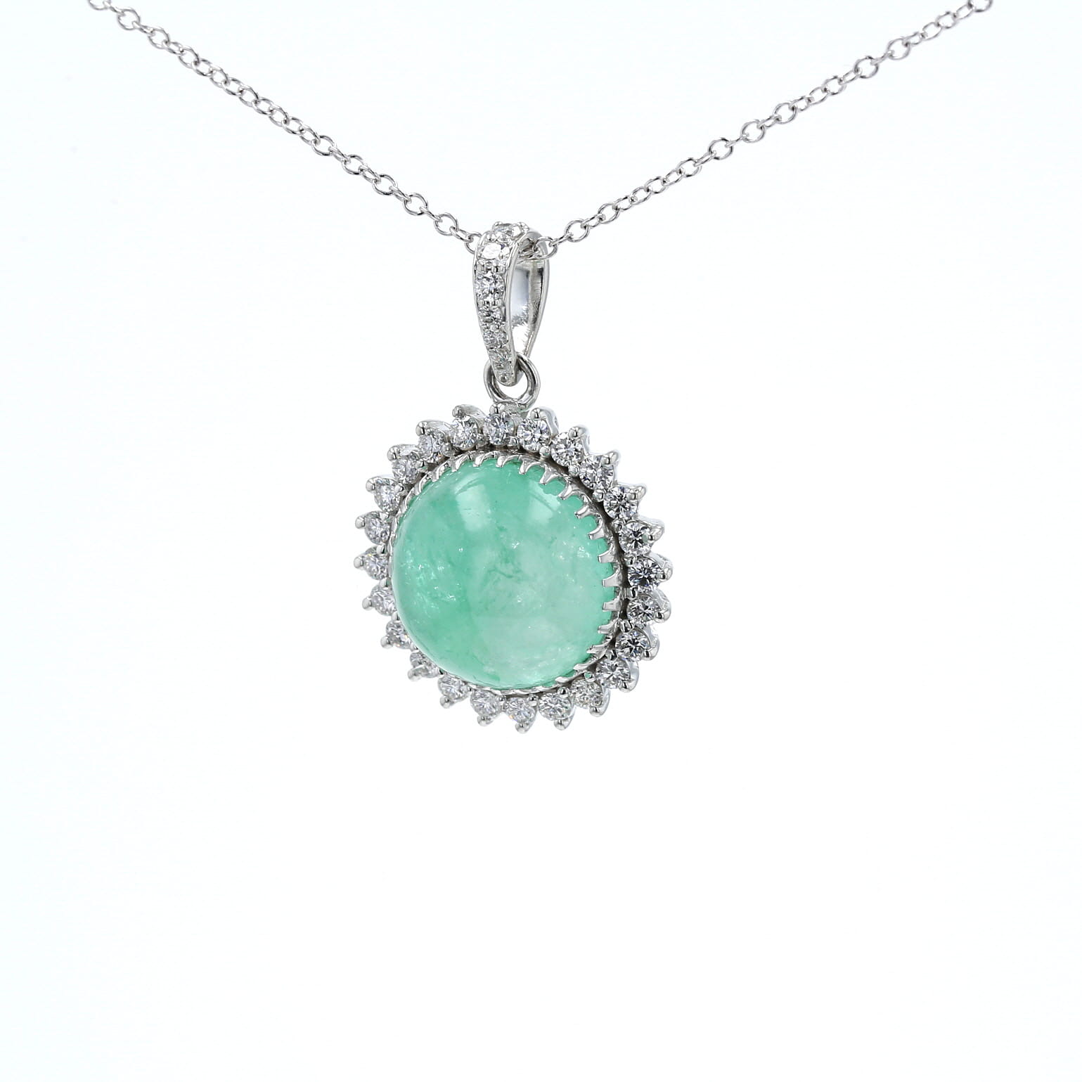 Colombian Emerald Pendant: 9.05 ct tw Emeralds, 1.10 ct tw Diamonds, 14K White Gold
